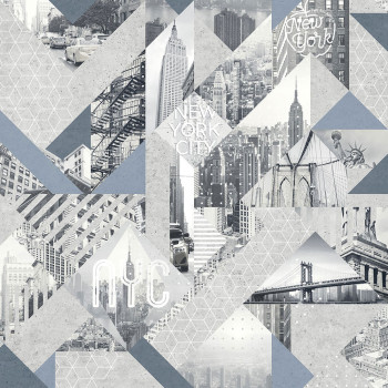 Rollenbreite 1,06 m. Wasserfeste Tapete - Collage mit Motiven aus New York.