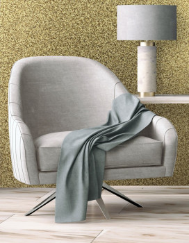 Gold-Metallic-Tapete mit abwaschbarer Oberfläche, Effekt kleine Steine.
