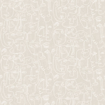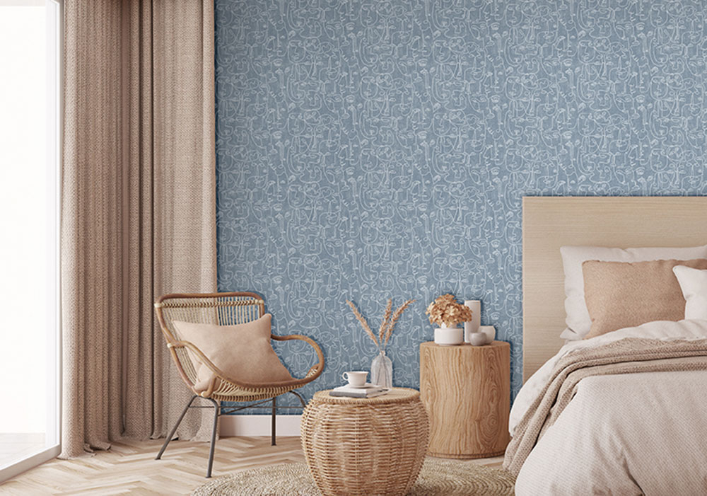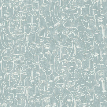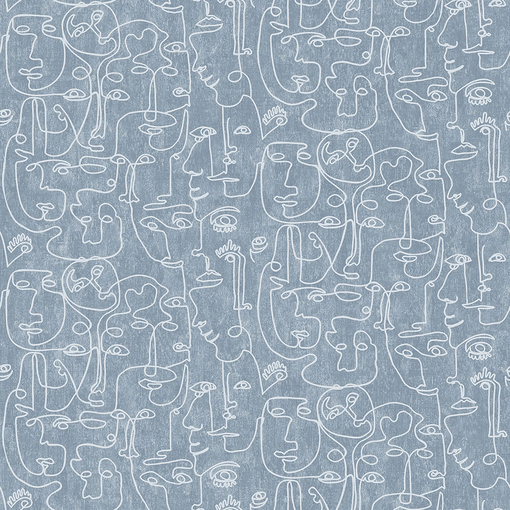 Grafische blaugraue Tapete - Konturen von Gesichtern.