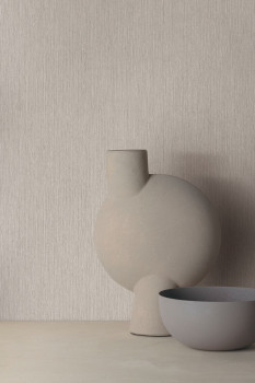 Graue Vliestapete mit einem Hauch von Seide. Inspiriert von der vom Meer geglätteten Holzstruktur.
