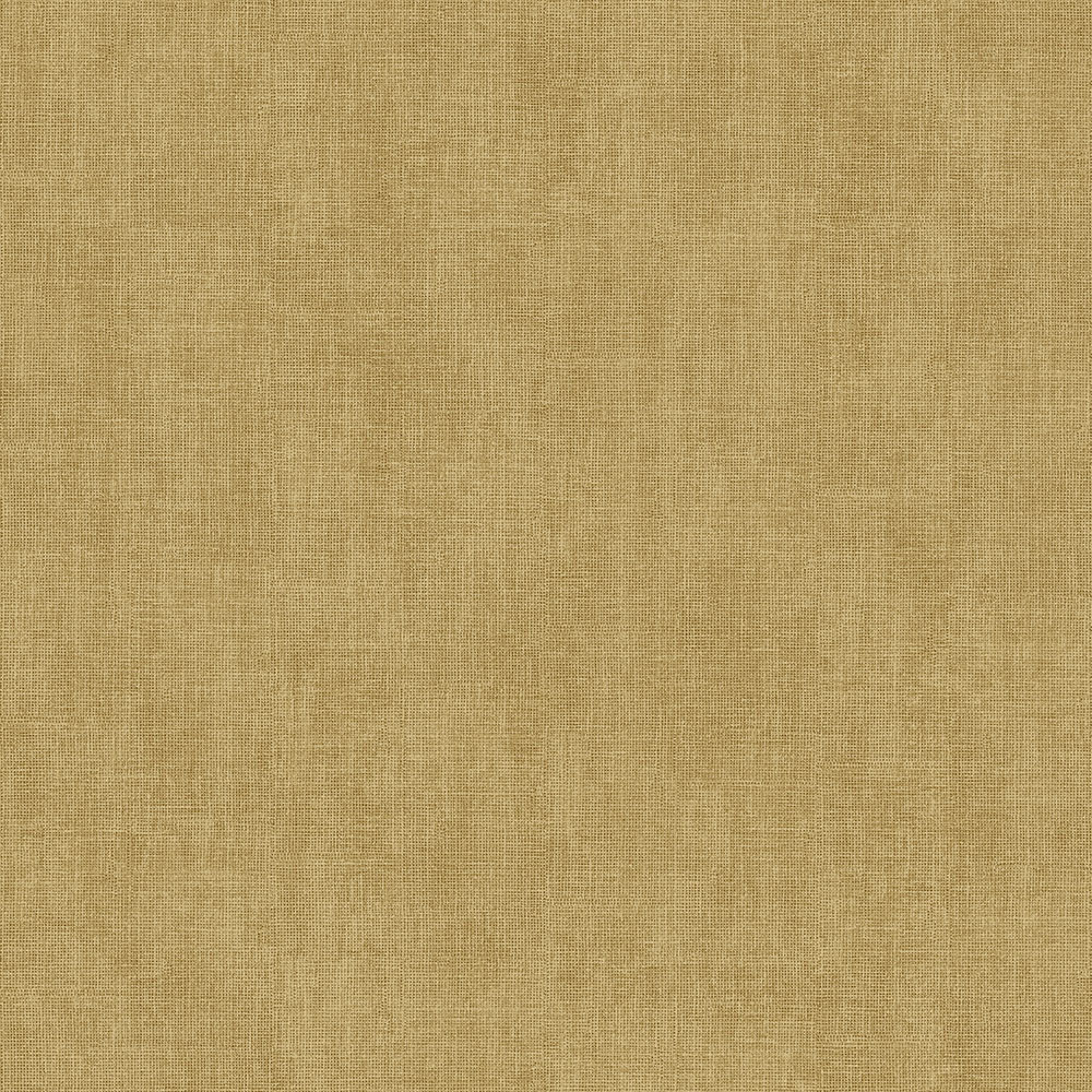Abwaschbare ockerfarbene Tapete, Stoffimitation mit feinem Goldglanz.