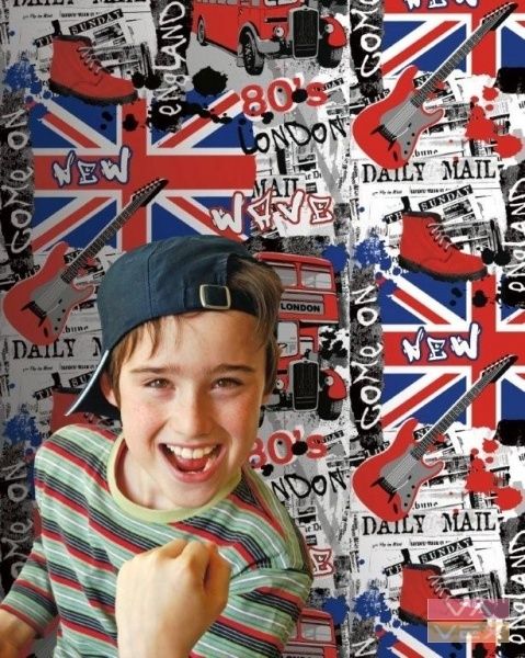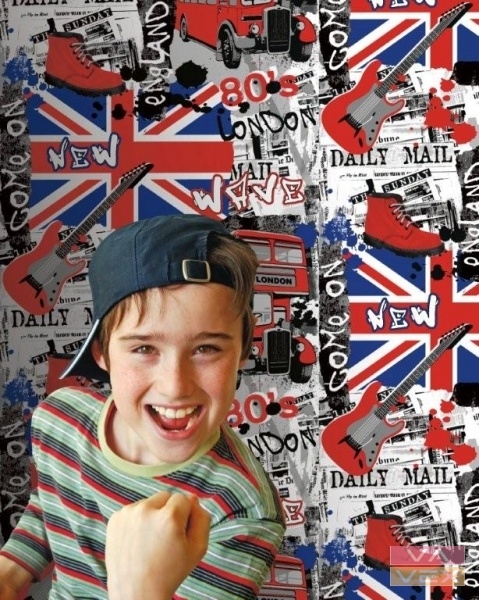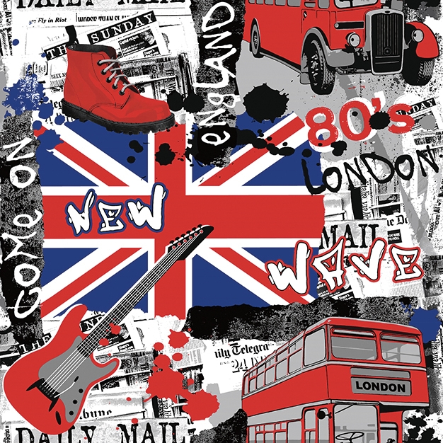 Papier, mehrfarbige Tapete mit London-Motiv.