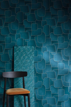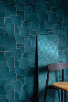 Blaue Tapete mit geometrischen Mustern MU3106 Muse, Grandeco