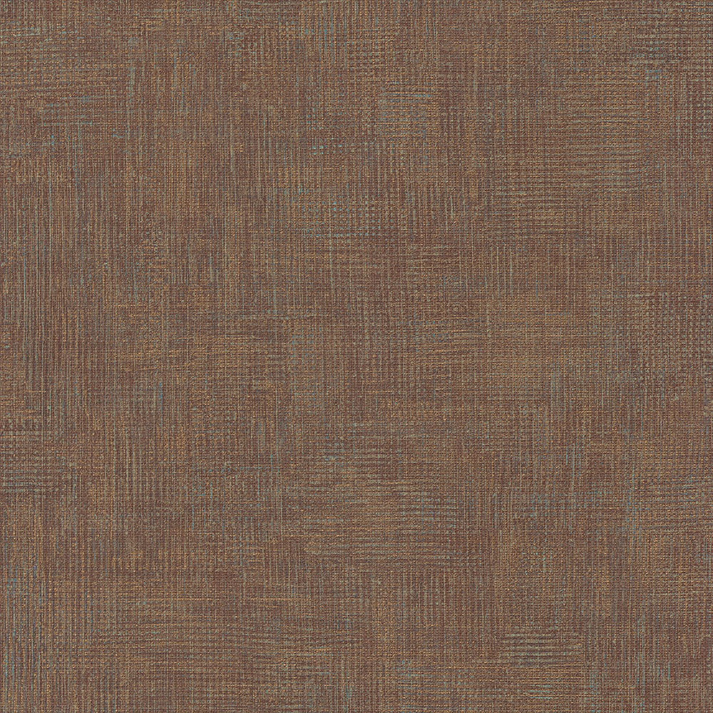 Tapete mit Textilstruktur in Braun und Kupfer.