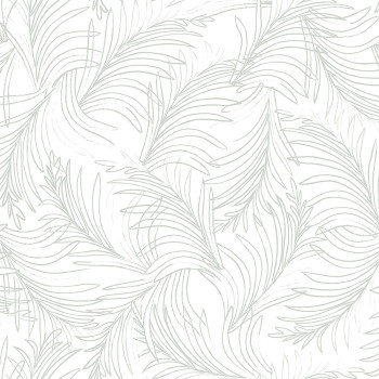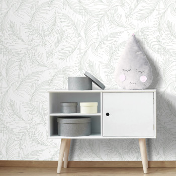 Weiße Tapete, grüne Umrisse von Palmblättern. Tapete geeignet für Schlafzimmer, Wohnzimmer, Arbeitszimmer.