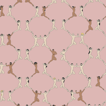 Pinke Tapete, Liebesmotiv - Ornamente aus menschlichen Figuren.