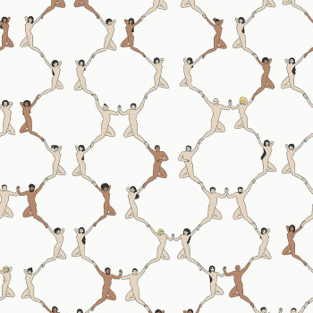 Cremefarbene Tapete, Liebesmotiv - Ornamente aus menschlichen Figuren.