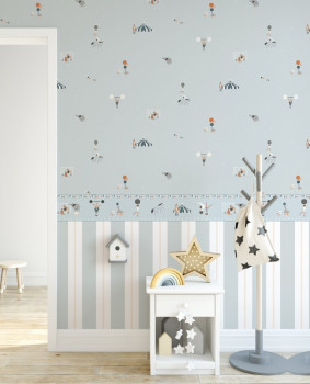Die NOA-Kindertapetenkollektion ist von lustigen und zarten Kinderzeichnungen inspiriert. Mit diesen Tapeten können Sie im Kinderzimmer eine poetische Welt voller Tiere, fliegender Ballons und Autos erschaffen, die in Kombination mit Tapeten mit Motiven von Punkten, Streifen und Wolken sicher perfekt wird.