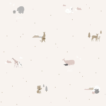 Hellrosa Kindertapete für Kinderzimmer. Kindertapete mit Tieren.