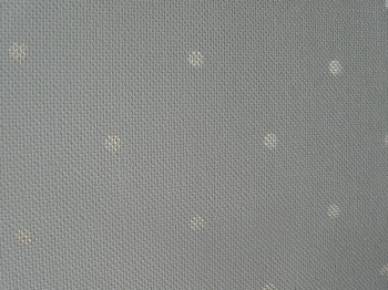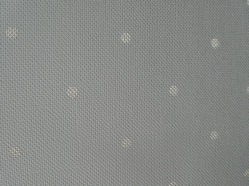Weißer Punkt auf hellblauer Tapete mit feiner Textilstruktur.