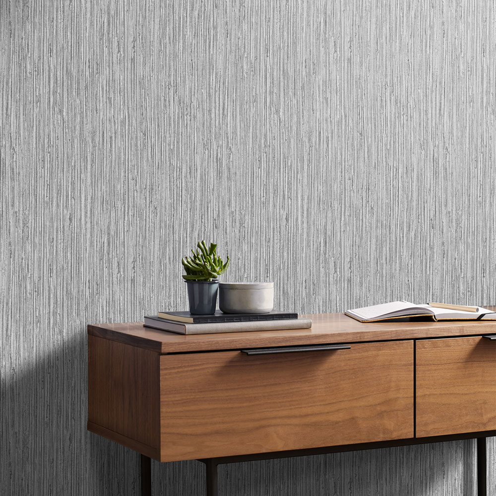 Feine Perlentapete in Grau- und Silberschattierungen.