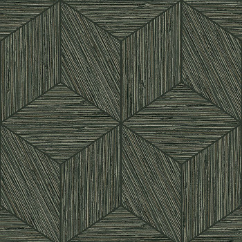 Feine Tapete mit geometrischen Mustern in Grün- und Brauntönen.