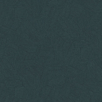 Blaue Tapete, dezenter Metallic-Halbglanz, grafisches Ethnomuster.