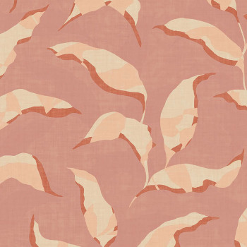 Rosa Tapete mit Blättern und Zweigen. Tapete geeignet für Wohnzimmer, Schlafzimmer oder Arbeitszimmer.