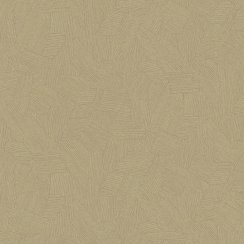 Ockerfarbene Tapete, dezent goldener Halbglanz, grafisches Ethnomuster.