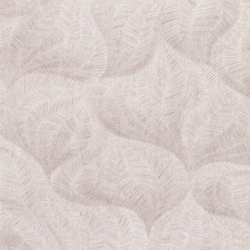 Rosa-cremefarbene Vliestapete, Muster aus stilisierten Blättern mit metallischen Details. Die Tapete eignet sich für Wohnzimmer, Schlafzimmer oder Arbeitszimmer.