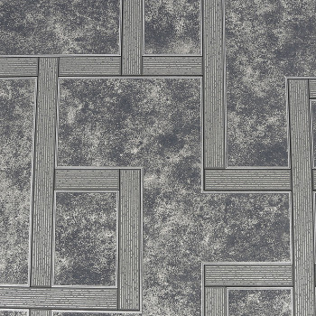 Luxuriöse Vliestapete mit ausgeprägter Stucktextur und geometrischen Mustern auf dunkelgrauem Hintergrund mit silberner Äderung.