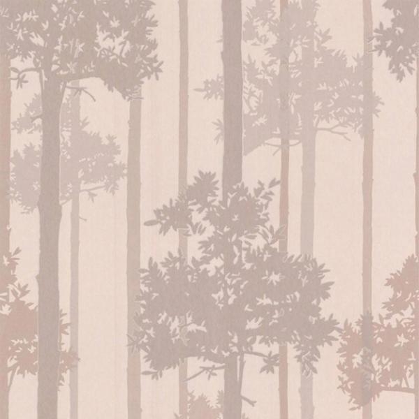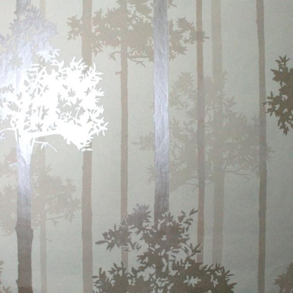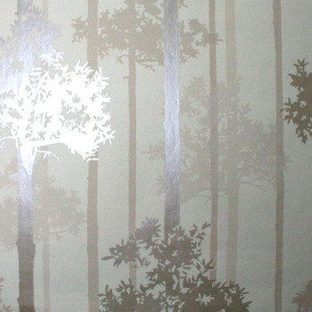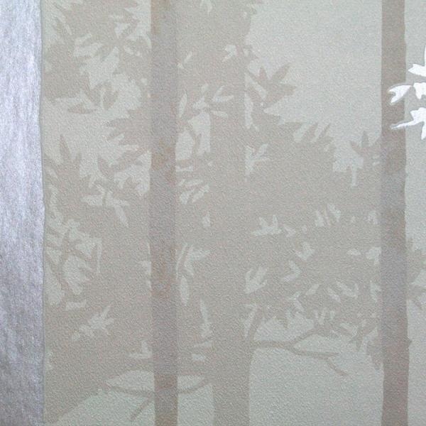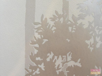 Vliestapete mit Muster, cremefarbener Hintergrund, beige Bäume, feiner Glanz.