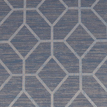 Luxustapete dunkelblau mit geometrischem Metallic-Muster auf einer strukturierten Oberfläche, die grobe Textilien imitiert.