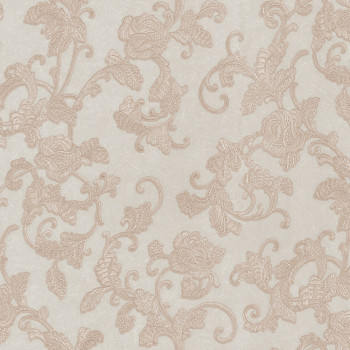 Rollenbreite 1,06 m. Cremefarbene Luxus-Vliestapete - Vinyloberfläche, beiges Barock-Ornamentmuster mit Goldglitter.