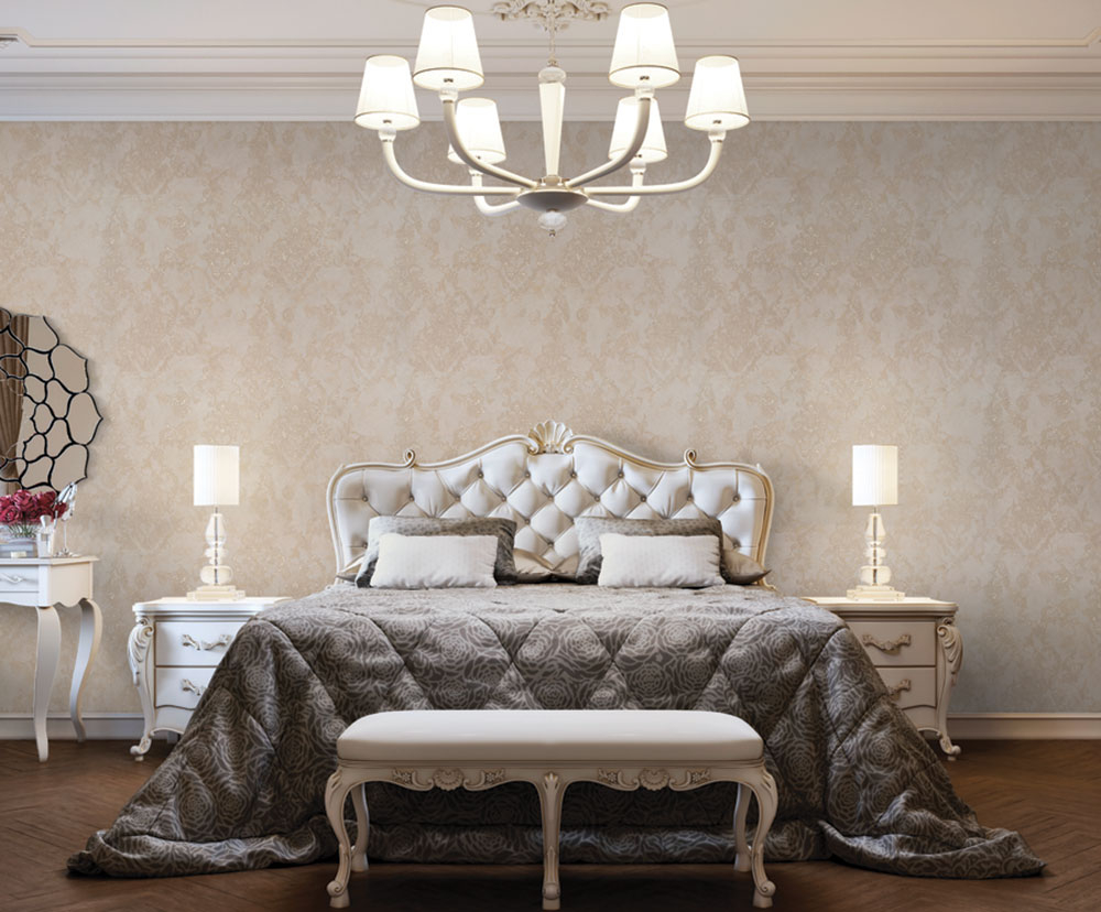 Luxuriöse cremefarbene Tapete, Ornamente M13009, Murella Italia, Zambaiti Parati