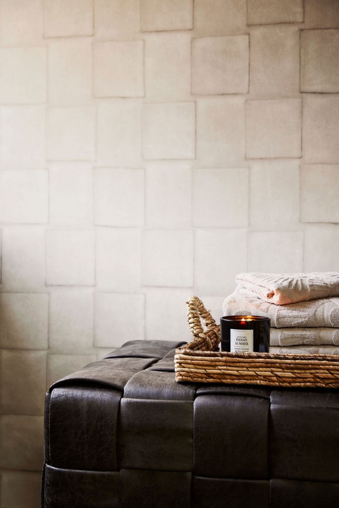 Grau-beige Vliestapete, geometrisches 3D-Muster, Lederimitat. Die Tapete ist geeignet für Wohnzimmer, Schlafzimmer, Flur oder Arbeitszimmer.