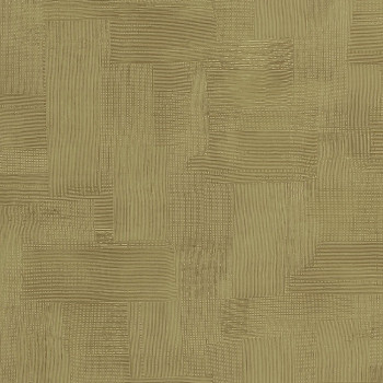 Luxuriöse goldgrüne Vliestapete mit grober geometrischer Struktur.