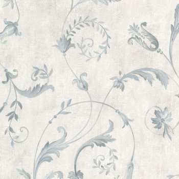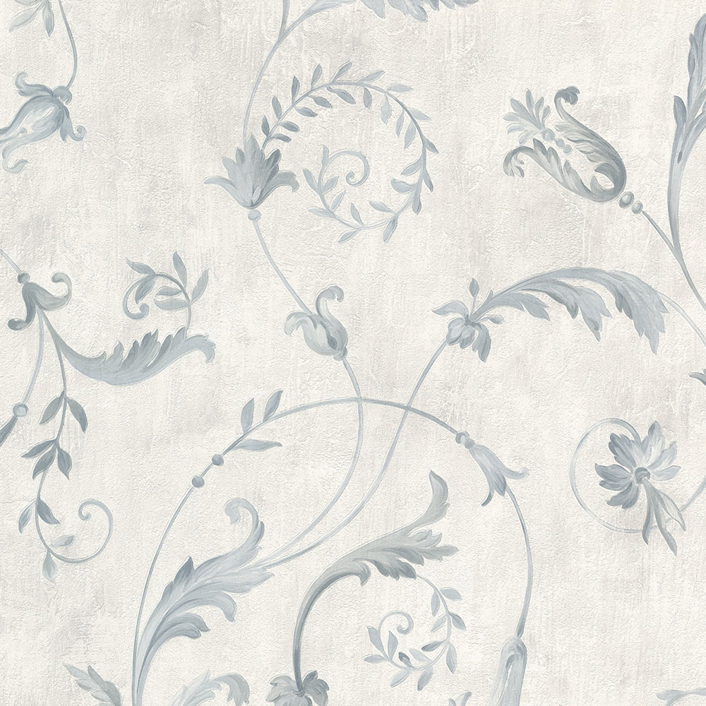 Luxus-Vliestapete mit floralen Ornamenten auf einem feinen Stuckhintergrund in Beige.
