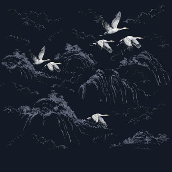 Fototapete mit fliegenden Störchen auf dunkelblauem, glattem Hintergrund bringt eine angenehme Atmosphäre in den Innenraum.