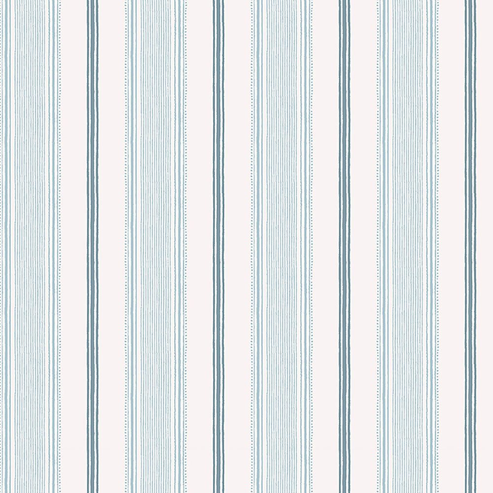 Vliestapete mit blauen Streifen auf weißem, glattem Hintergrund bringt eine angenehme Atmosphäre in den Innenraum.