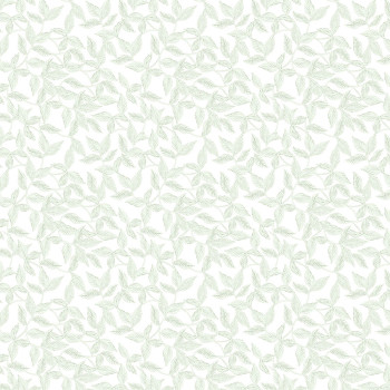 Vliestapete mit hellgrünen Blättern auf weißem, glatten Hintergrund bringt eine angenehme Atmosphäre in den Innenraum.