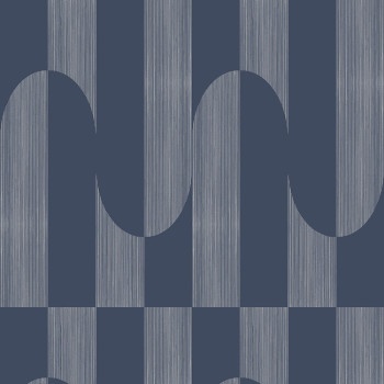 Vliestapete mit silbernen geometrischen Mustern auf dunkelblauem Hintergrund.