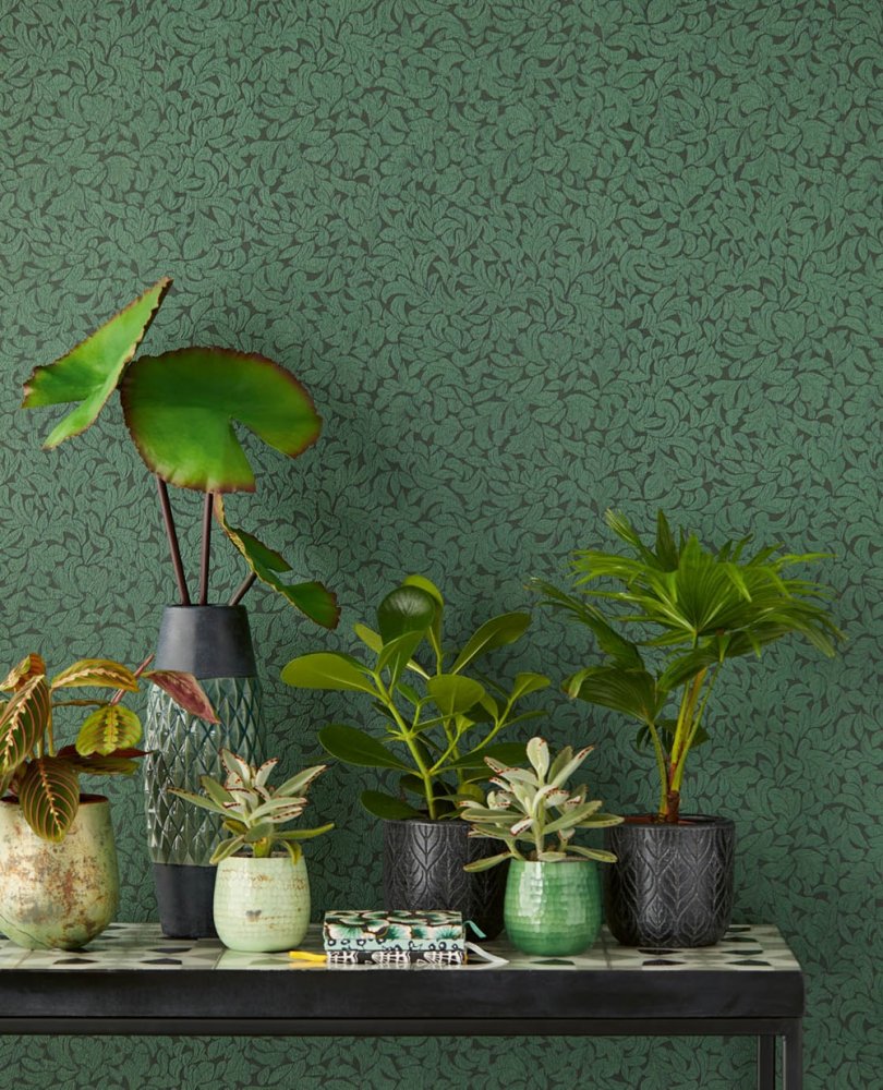 Design aus zart geprägtem Blattmotiv. Hintergrund matt dunkelbraun, Muster braun mit dezentem Halbglanz. Eine Kollektion, die von den Werken der kühnen, unabhängigen und stilvollen Frida Kahlo inspiriert ist.