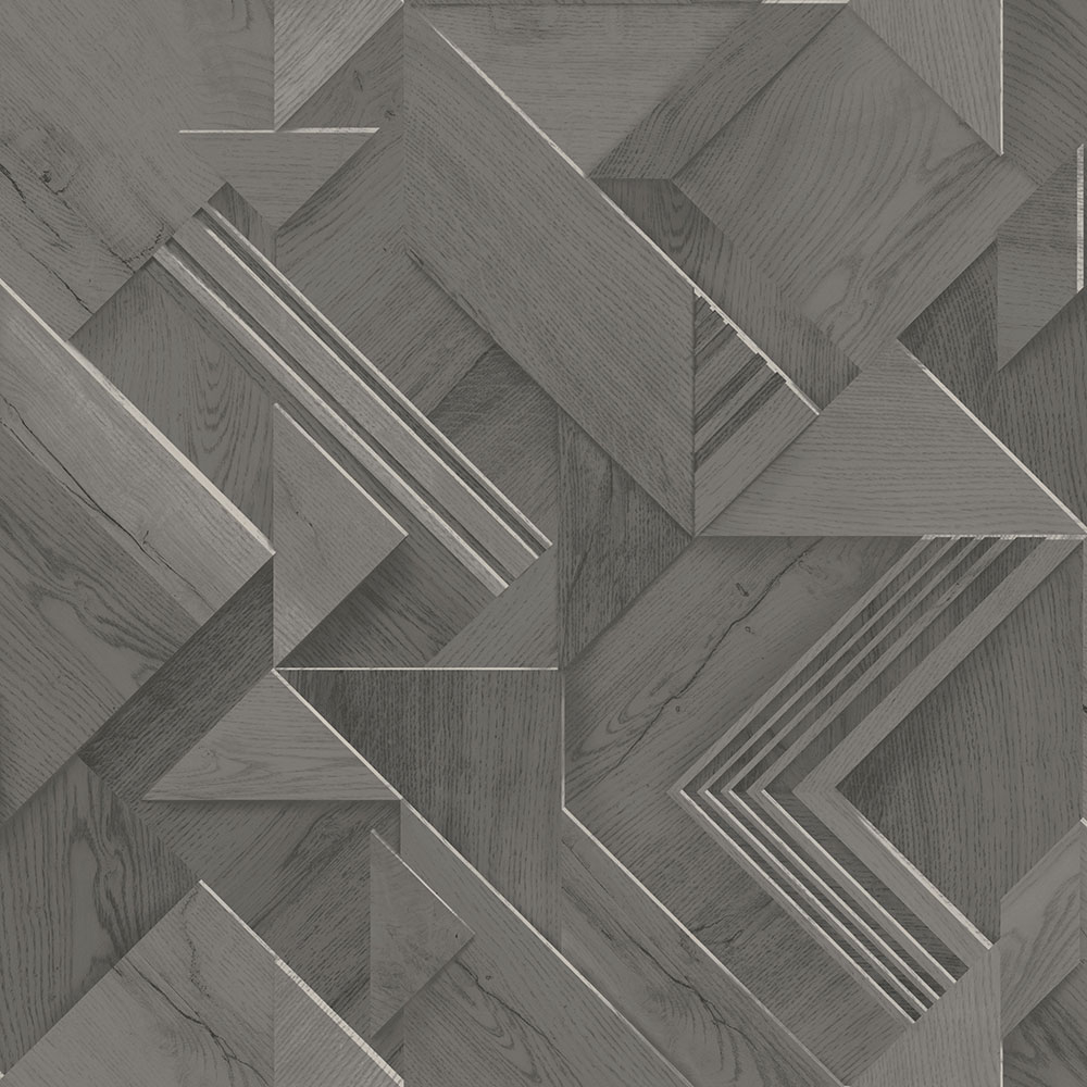 Dunkelgraue, fein strukturierte Vliestapete mit geometrischem Muster.