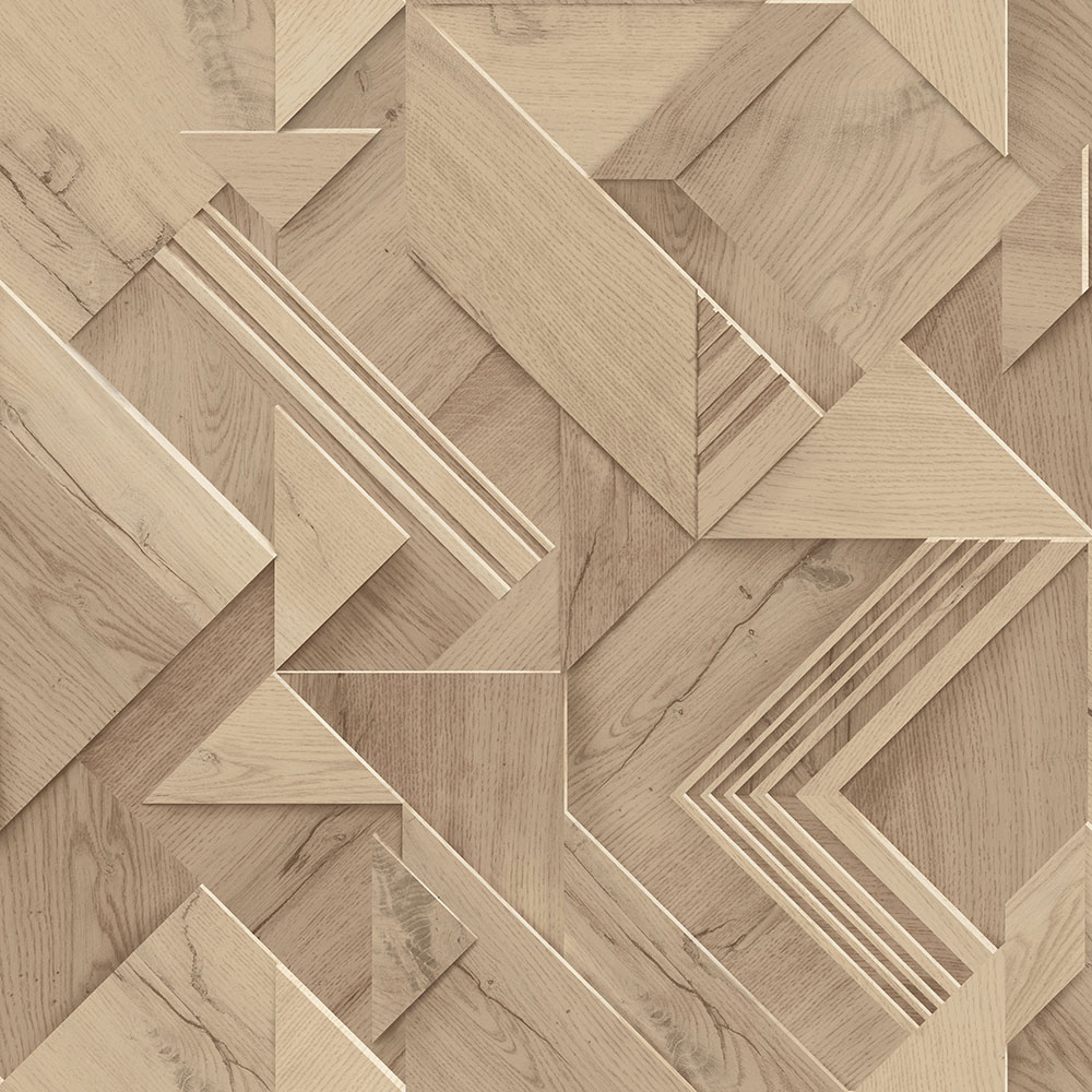 Beige, fein strukturierte Vliestapete mit geometrischem Muster.