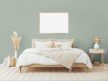 Vliestapete mit Vinyloberfläche, Beton- und Stuckoptik in Grüntönen.