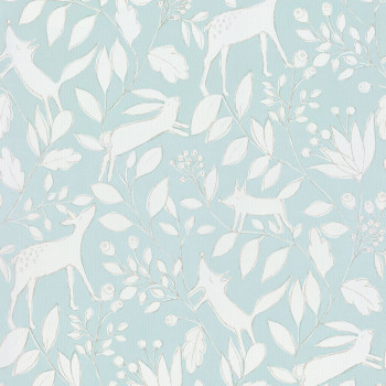 Türkisfarbene Vliestapete für Kinderzimmer - Tapete Waldtiere.