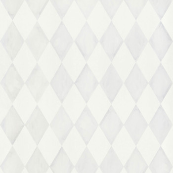 Weiß-grau-grüne Vliestapete mit Harlekin-Muster.