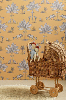Rosa Kindertapete, Palmen, Tiere aus Afrika 220750, Doodleedo, BN Walls