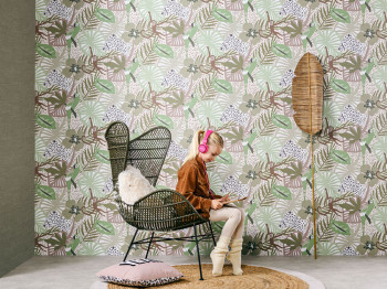 Kindertapete mit Blättern, Papageien, Affen 220723, Doodleedo, BN Walls