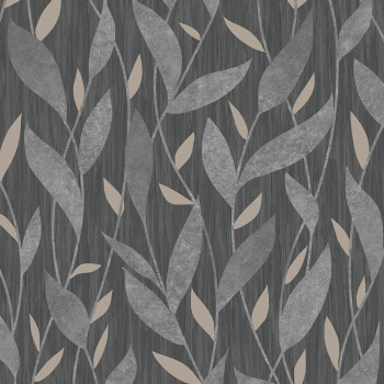 Vliestapete mit Vinyloberfläche mit Blattmuster in Schwarztönen.