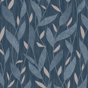 Vliestapete mit Vinyloberfläche mit Blattmuster in Blautönen.
