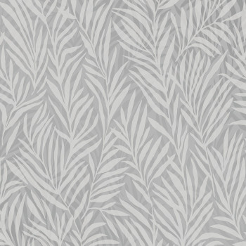 Vliestapete mit Vinyloberfläche mit Blattmuster in Grautönen mit dezenten Reflexen.