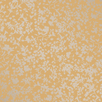 Vliestapete mit Papieroberfläche in Gelbtönen mit dezenten Reflexen und floralem Muster.