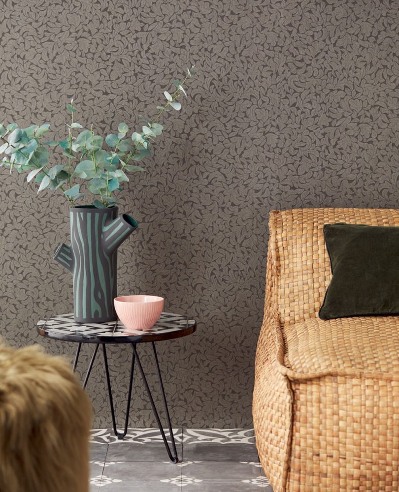 Design aus zart geprägtem Blattmotiv. Hintergrund matt ecru/natur, Muster feiner Perlglanz. Eine Kollektion, die von den Werken der kühnen, unabhängigen und stilvollen Frida Kahlo inspiriert ist.
