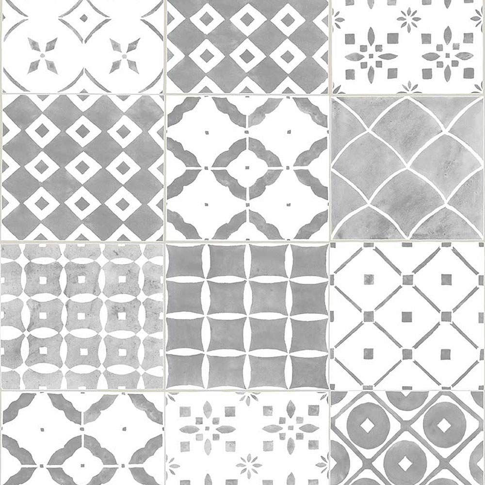 Küchentapete mit Vinyloberfläche in Hellgrau, Fliesenimitation.