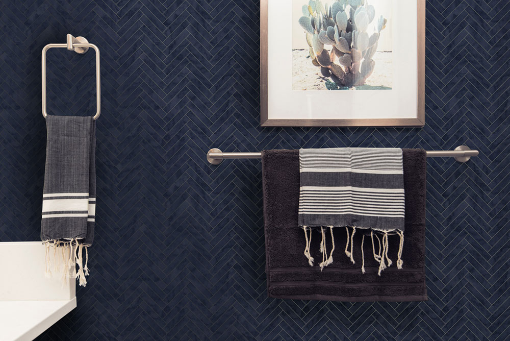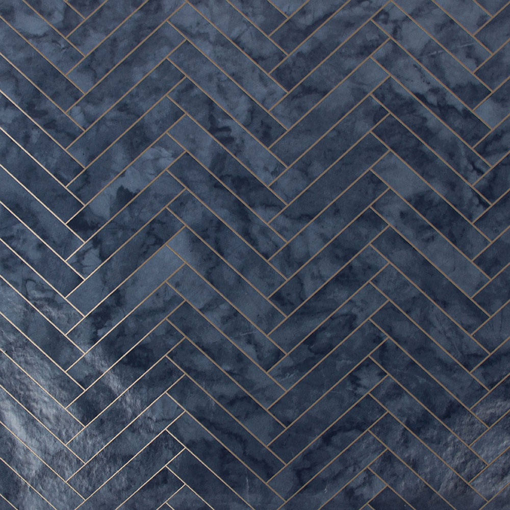 Geometrische Küchen- und Badtapete mit Vinyloberfläche, dunkelblauer Marmor.