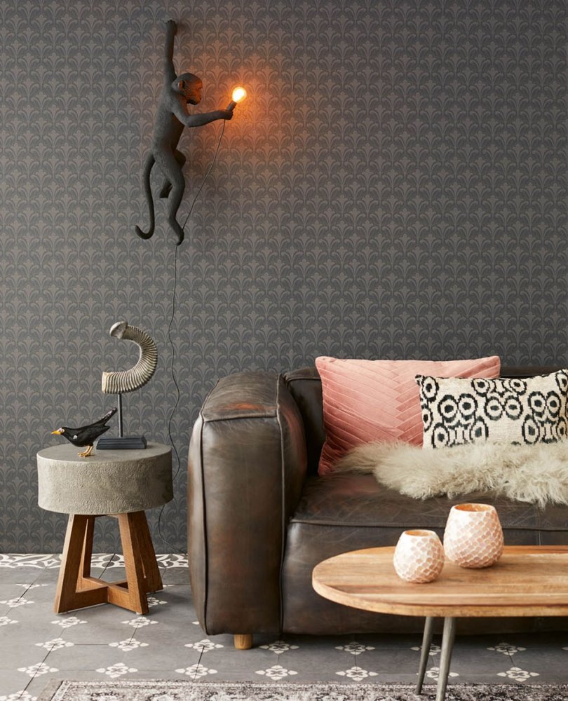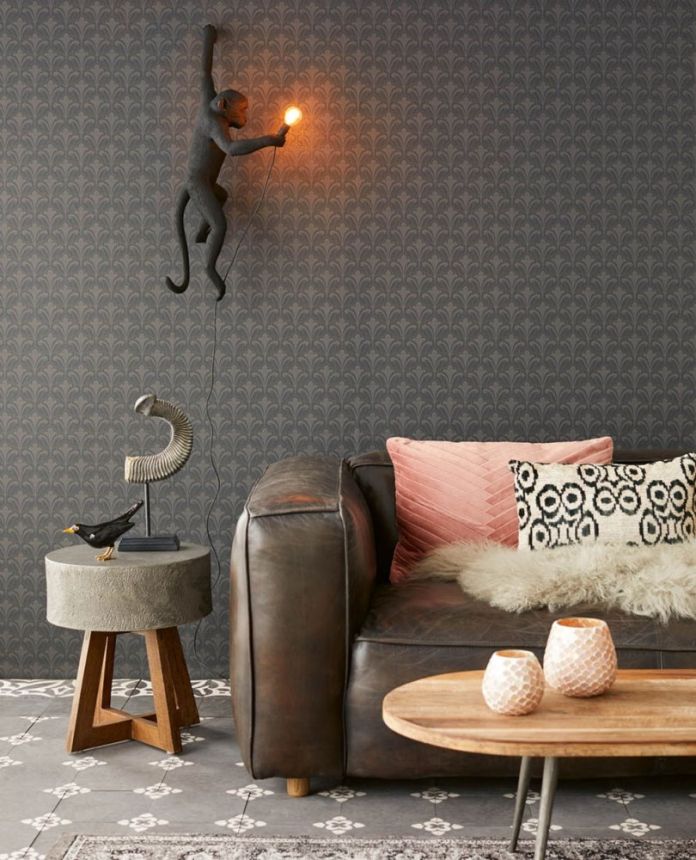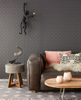 Matte, glatte Vliestapete mit ornamentalem Muster in Braun- und Schwarztönen. Eine Kollektion, die von den Werken der kühnen, unabhängigen und stilvollen Frida Kahlo inspiriert ist.