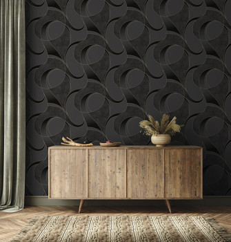 Schwarze Tapete mit geometrischen Mustern A57216, Vavex 2024