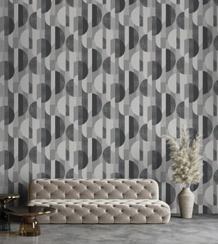 Moderne graue geometrische Vliestapete mit markantem Muster.